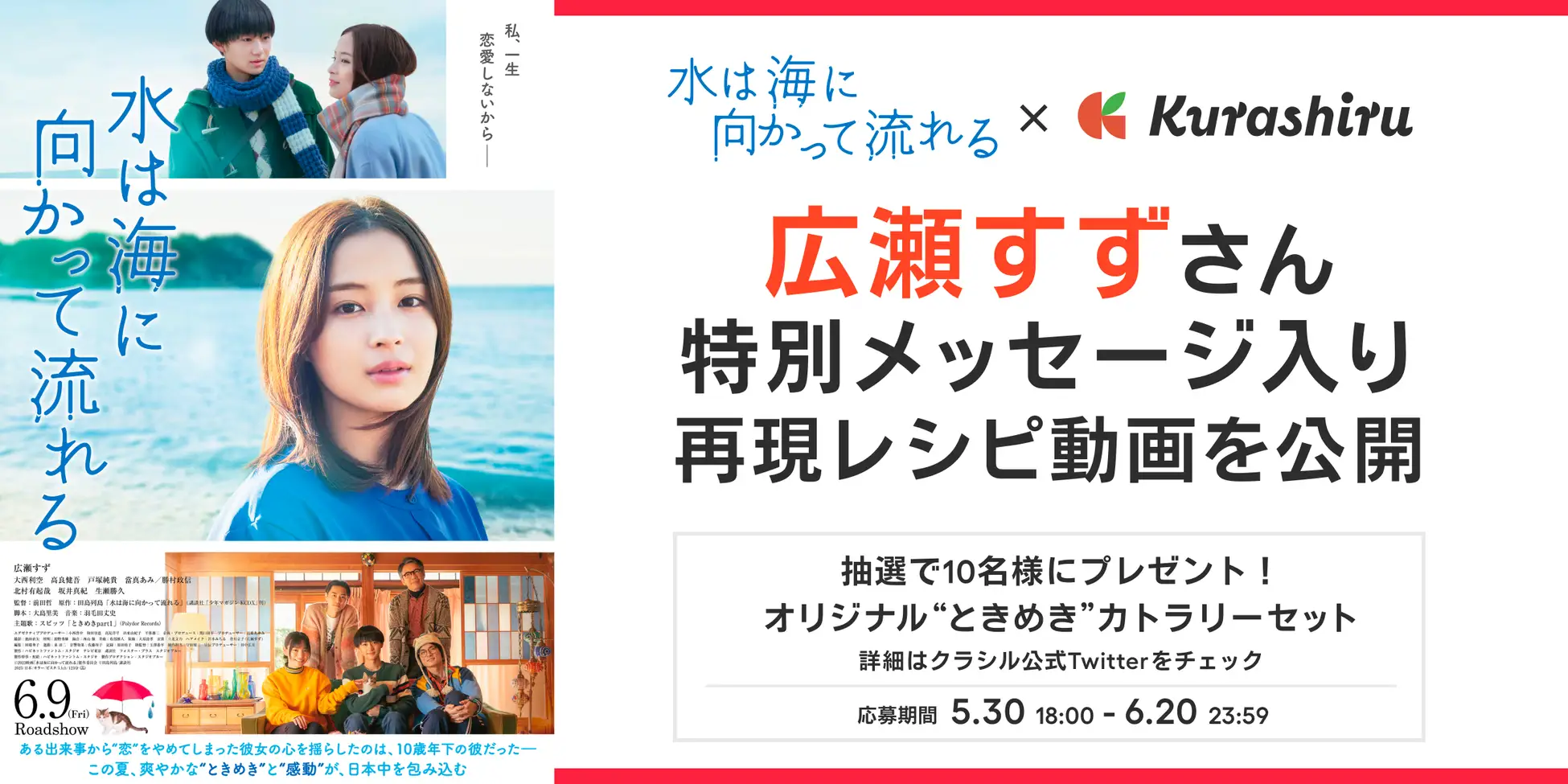 国内No.1のレシピ動画サービス「クラシル」(※1)を運営するdely株式会社は、2023年5月30日(火)より、映画『水は海に向かって流れる』とコラボレーションしたレシピ動画を公開します。