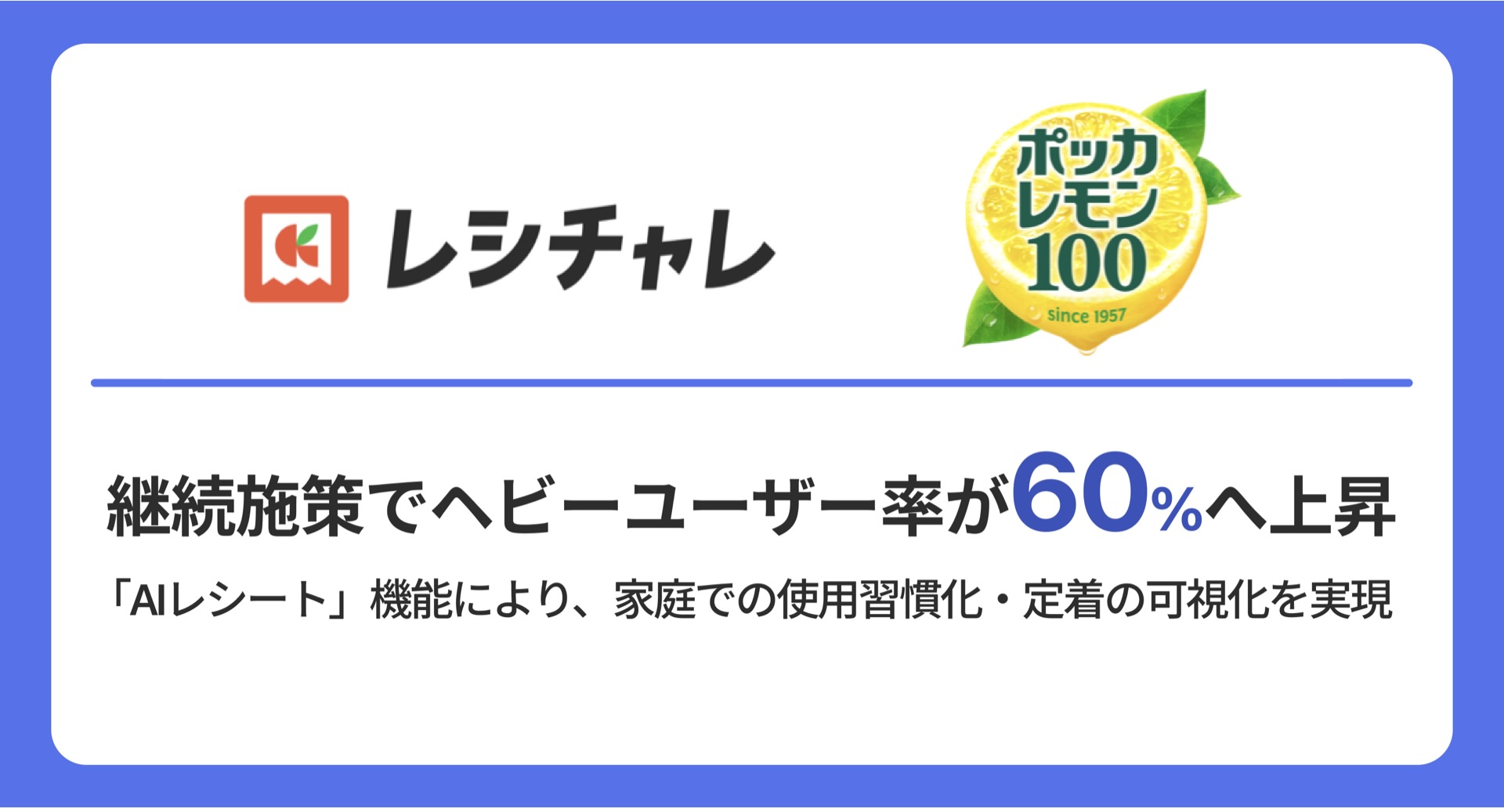 こうした継続的なアプローチの結果、業界初となる“全流通横断型”の購買データを分析できる「AIレシート」機能を用いた検証において、回収した全レシートデータにおける対象商品の出現率が、施策前と比較して「レシチャレ」で44%増、調理体験を伴う「たべチャレ」では167%増という顕著な伸びを記録しました。また、参加者アンケート結果から、対象商品を週2〜3回以上使用する「ヘビーユーザー率」が37%から60%へと向上したことを確認しました。