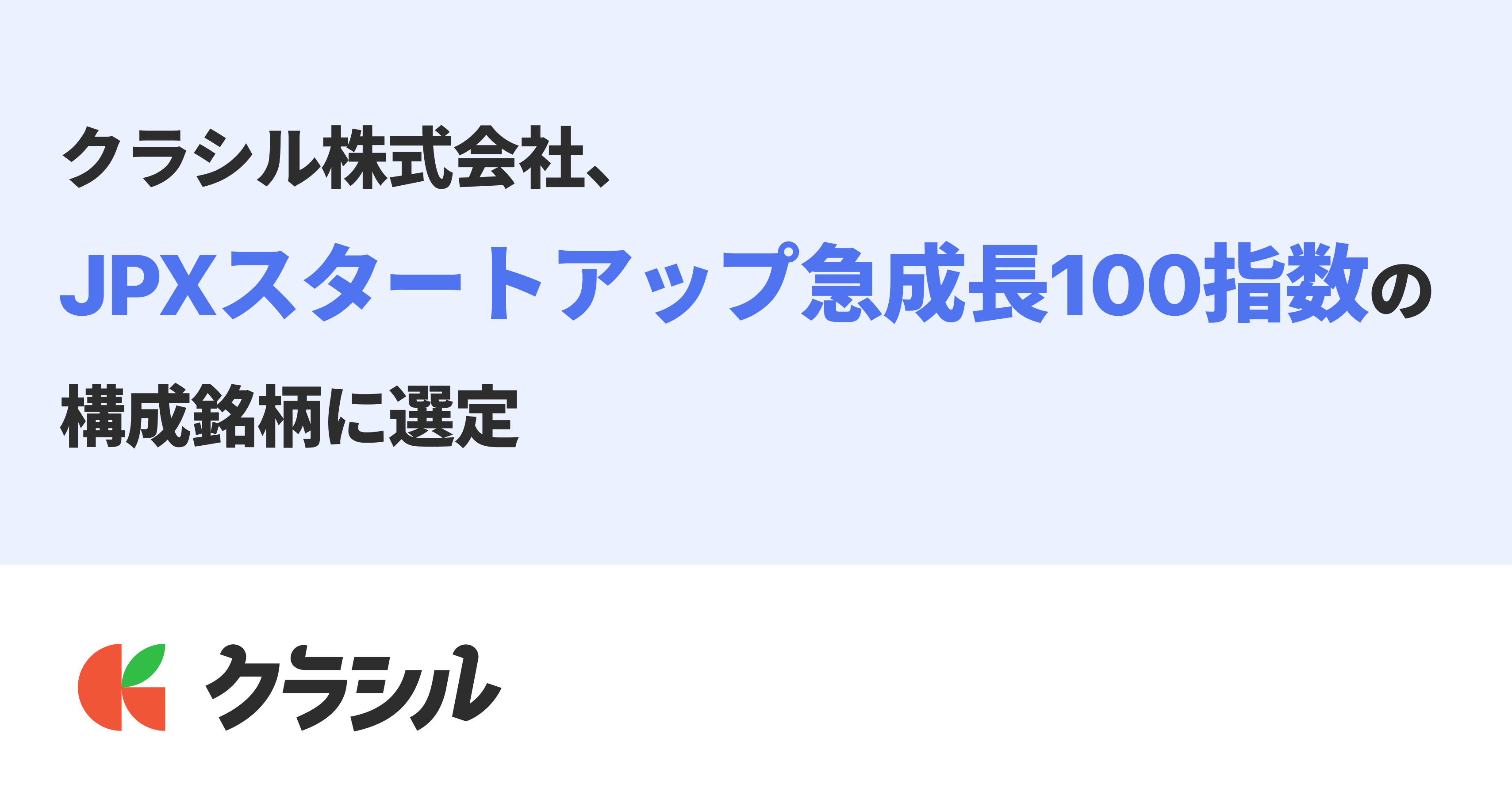 クラシル株式会社(本社:東京都港区、代表取締役社長:堀江 裕介、以下「当社」)は、株式会社JPX総研が新設した、日本を代表する高成長スタートアップ企業で構成される指数「JPXスタートアップ急成長100指数(JPX Startup 100)」の構成銘柄として選定されましたことをお知らせいたします。